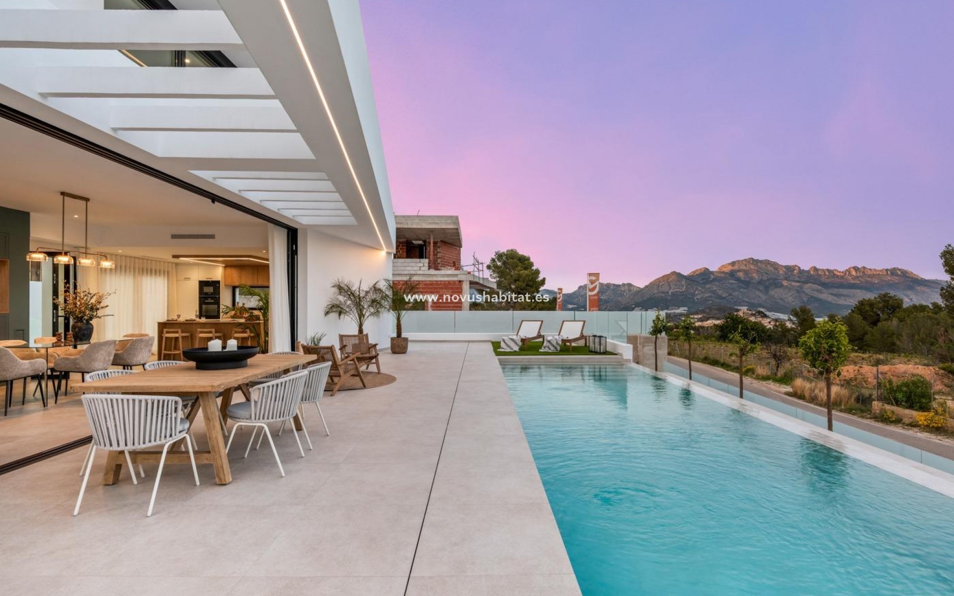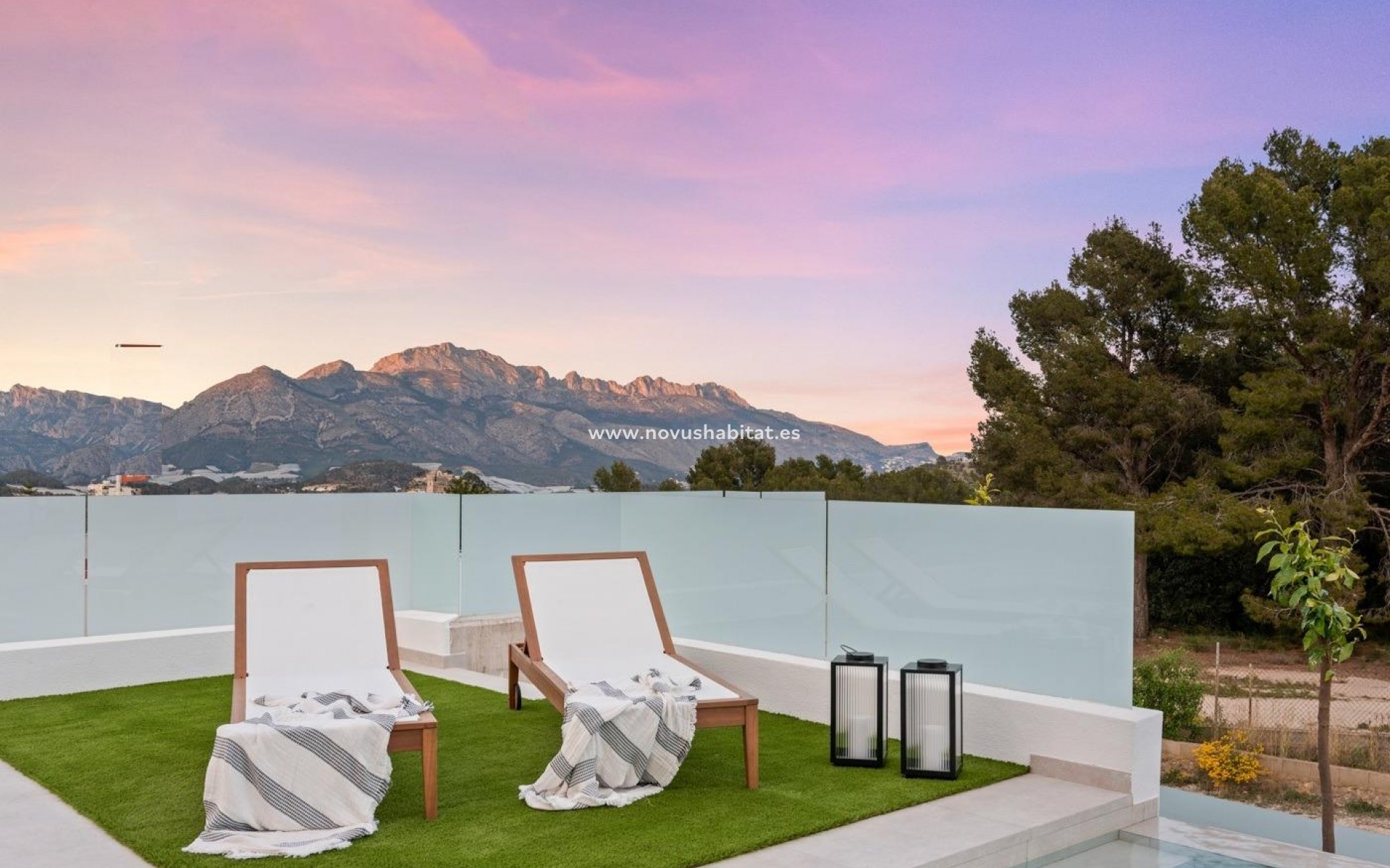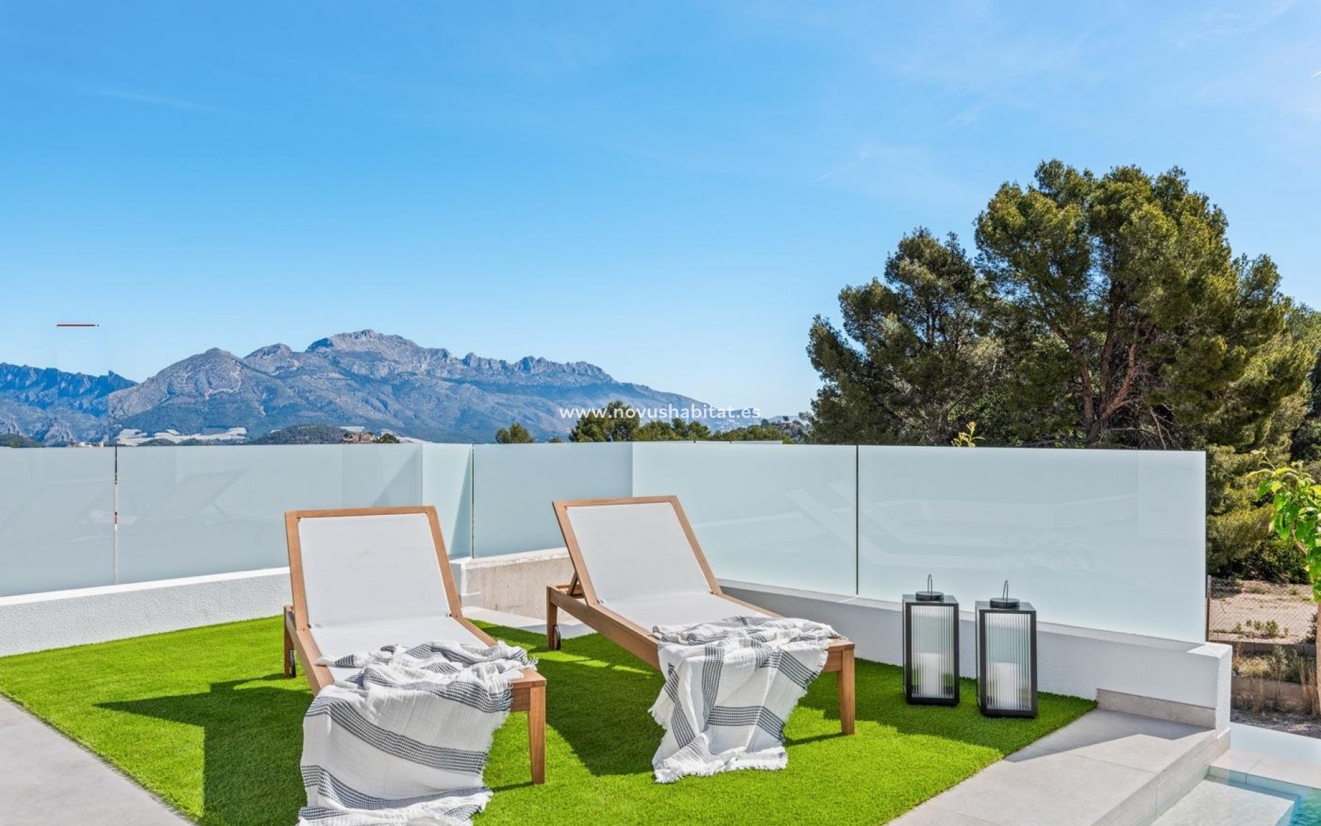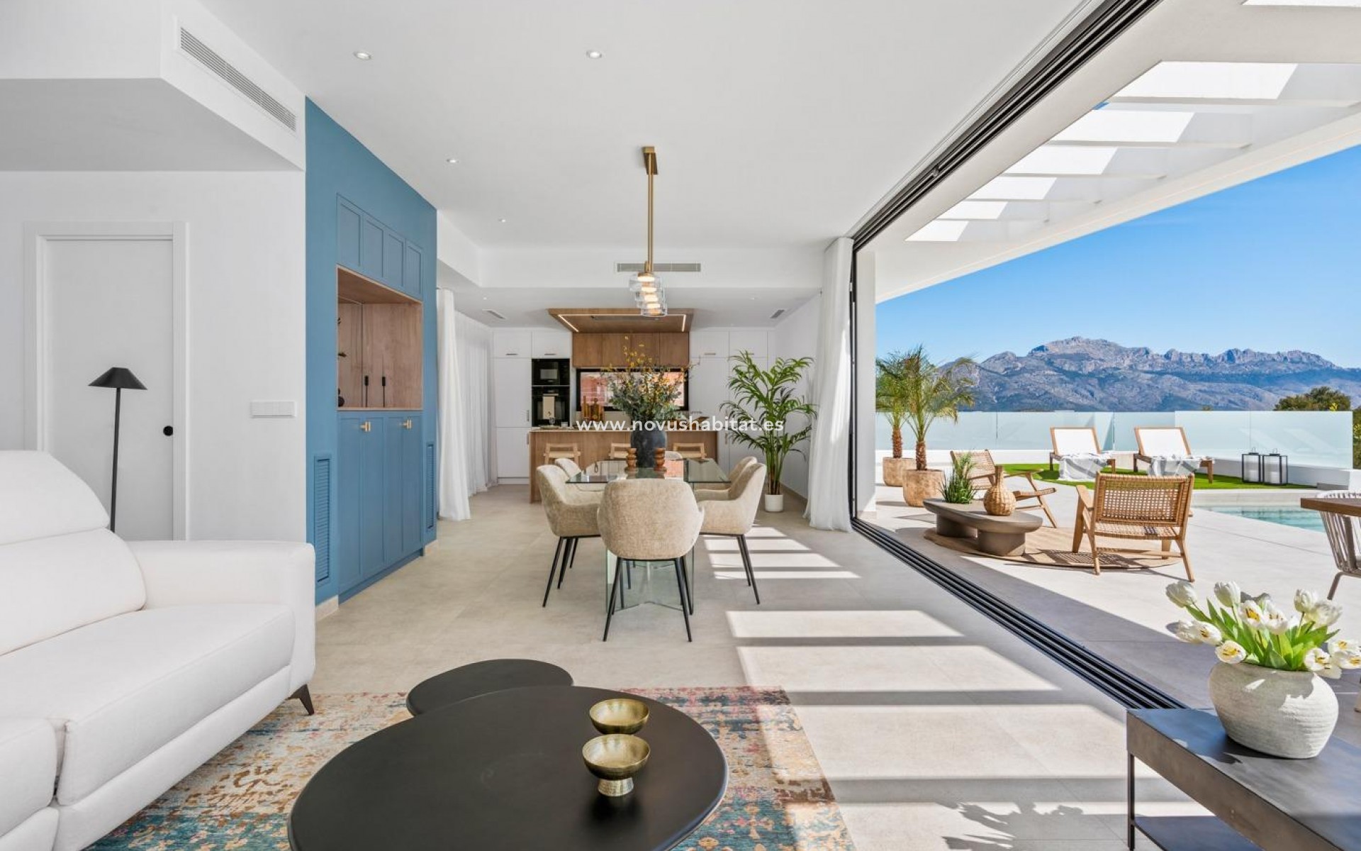 Ný einbýlishús í vinsælu íbúðarhverfi í Polop, á Costa Blanca norður. Svæðið er staðsett í hlíð og býður upp á frábært útsýni yfir fjöllin og Miðjarðarhafið. Á svæðinu er úrval af daglegum þægindum, eins og verslunarmiðstöðvum, matvöruverslunum, verslunum, börum og veitingastöðum, sem og þjónusta banka, apóteka og læknamiðstöðvar. Útivistarfólk getur notið fjölbreyttrar afþreyingar, eins og gönguferða, golfs, hjólreiða og vatnaíþrótta á nærliggjandi ströndum El Albir, Altea og Benidorm. Nágrannaborgin Benidorm er ekki aðeins þekkt fyrir fjölbreytta afþreyingu sína, eins og kvöldverðarsýningar, krár og næturklúbba, heldur einnig fyrir marga skemmtigarða, eins og Terra Mitica og Aqualandia, og frægar strendur. Frábært vegakerfið gerir það mögulegt að komast til ýmsa ferðamannasvæða á Costa Blanca, eins og Benidorm á 15 mínútum, Calpe og Moraira á 30 mínútum og Alicante og alþjóðaflugvöllinn á innan við klukkustund.