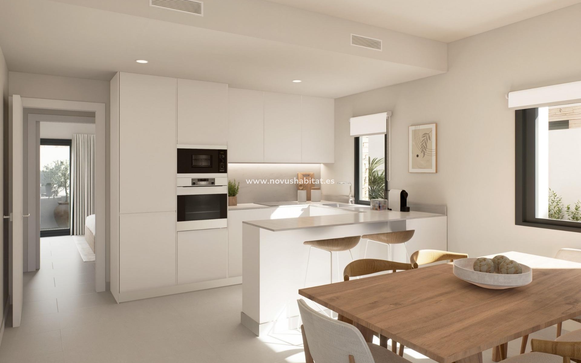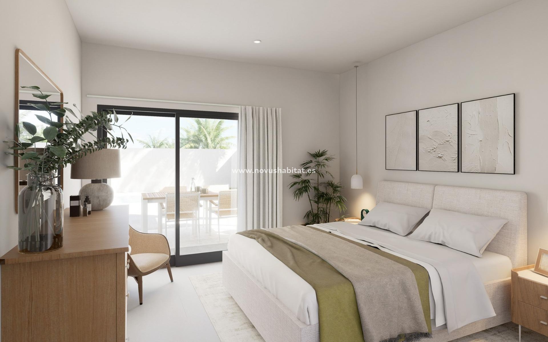 Moderne nieuwbouwwoningen met privézwembad in Valle del Este, Vera, Almería Exclusieve privéwoonwijk met 33 onafhankelijke villa's Ontdek een unieke collectie van 33 nieuwbouwwoningen in een beveiligde privéwoonwijk in Valle del Este, Vera, Almería. Deze wijk ligt naast het prestigieuze Valle del Este Resort en de golfbaan Valle del Este en biedt de perfecte mix van natuur, rust en resortleven. Elke villa is ontworpen op één niveau en biedt maximaal comfort en functioneel wonen, ideaal voor zowel permanente bewoning als vakantie-investering. Eigentijds ontwerp op één niveau met solarium en zwembad Deze prachtig ontworpen woningen beschikken over 3 slaapkamers en 2 badkamers, een ruime open woonkamer en een naadloze verbinding tussen binnen en buiten. Elke villa heeft een eigen solarium, een privézwembad en een onafhankelijk perceel met aangelegde tuinen. Belangrijkste kenmerken: Volledig ingerichte keuken met apparatuur Moderne badkamers met wastafels en doucheschermen Privézwembad met nachtverlichting en zoutwatersysteem Privé-solarium en pergola Gemotoriseerde poort en privéparkeerplaats Voorbereiding voor airconditioning Toplocatie vlakbij het strand, golfbanen en voorzieningen Valle del Este is een van de meest gewilde woonwijken in de Levante Almeriense, bekend om zijn rustige omgeving, hoogwaardige golfvoorzieningen, natuurlijke landschappen en uitstekende mediterrane klimaat. Vera staat internationaal bekend om zijn natuurlijke stranden en kristalheldere water, met meer dan 6 km kustlijn, waaronder Las Marinas Bolaga, Puerto Rey, El Playazo en Quitapellejos. Ook in de buurt liggen topkustplaatsen als Mojácar en Garrucha, beroemd om hun charmante stranden, jachthavens, restaurants en recreatiemogelijkheden. Afstanden tot belangrijke bezienswaardigheden Valle del Este Golf 0,3 km Stranden van Vera 7 km Mojácar en Garrucha minder dan 10 km Luchthaven Almería 75 km (45 minuten) Luchthaven Corvera Murcia 140 km (1 uur en 30 minuten) Luchthaven Alicante 200 km (2 uur) Het gebied is perfect verbonden via de mediterrane snelweg A7, waardoor u snel toegang heeft tot diensten, winkels, strandclubs, jachthavens, sportfaciliteiten en culturele bezienswaardigheden in de regio. Geniet van luxe mediterraan leven in Vera Ervaar de perfecte balans tussen modern design, privacy en resortlifestyle in een van de meest aantrekkelijke gebieden van Almería. Neem vandaag nog contact met ons op voor meer informatie, beschikbaarheid en bezichtigingsafspraken en verzeker uzelf van uw droomvilla in Valle del Este.